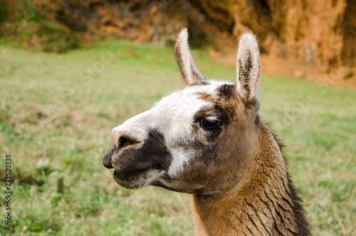 Obraz premium Portrait of a llama in a park in the middle of nature
