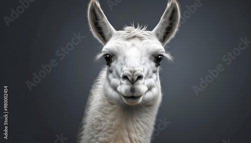 © Steph, Obraz premium portrait of a llama isolated on solid gray background