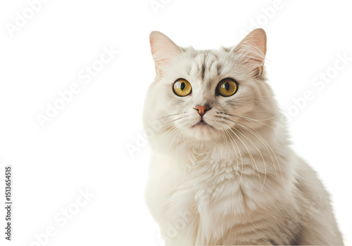 © White, Obraz premium Portrait of a Longhaired White Cat Against a White Background isolated on transparent baackground