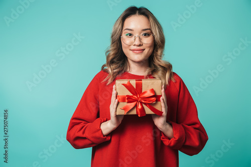Fototapeta premium Portrait of a lovely young asian woman standing isolated