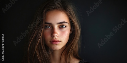 © HN Works, Fototapeta premium Portrait of a lovely young brunette against a black backdrop.