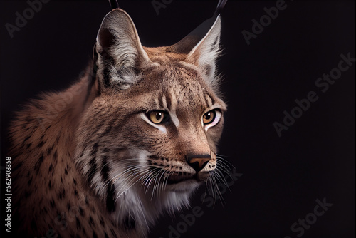 © Julian, Obraz premium Portrait of a lynx on a black background. generative ai