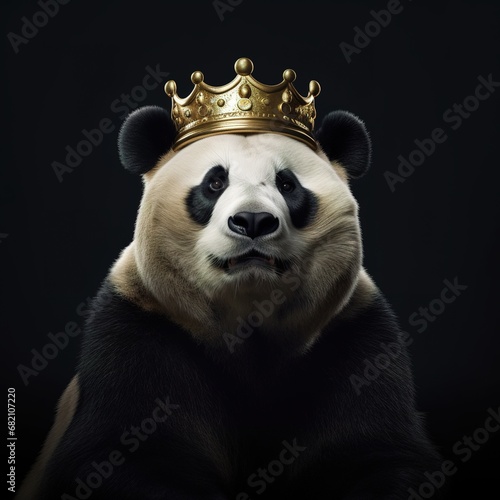 © somsong, Obraz premium portrait of a majestic panda with a crown