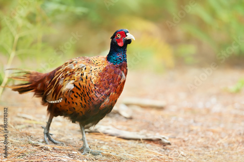 © giedriius, Fototapeta premium Portrait of a male common pheasant walking in the meadow