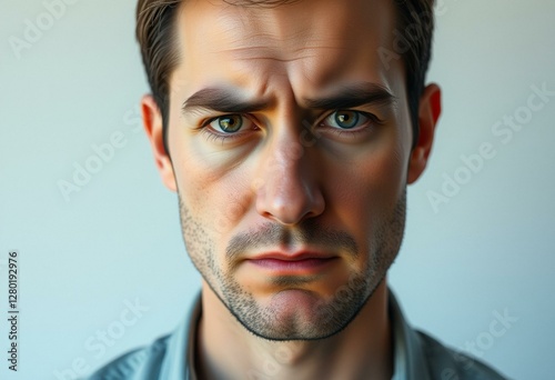 © iushakovsky, Fototapeta premium Portrait of a male individual with a subtle expression of irritation