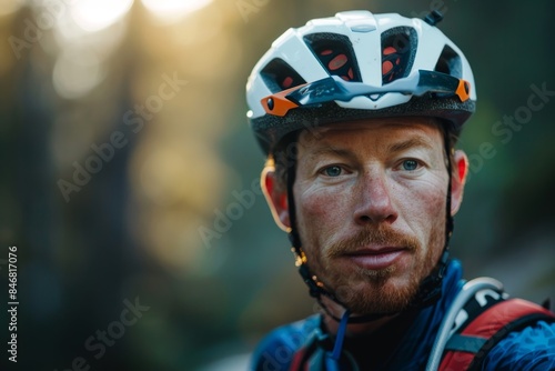 © Kamonwan, Fototapeta premium portrait of a male mountain biker on a trail