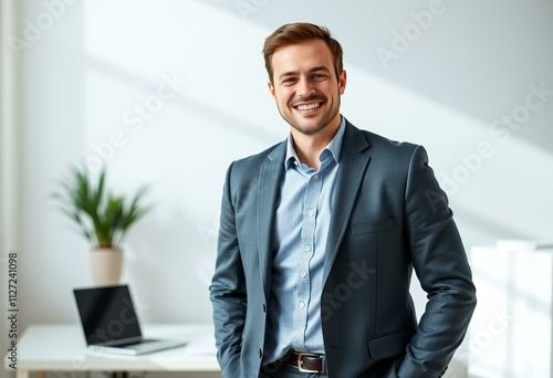 © iushakovsky, Fototapeta premium Portrait of a male salesman in a modern office