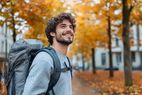 Obraz premium Portrait of a man in a gray suit standing confidently outside an urban...