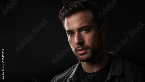 Naklejka premium Portrait of a man on black background