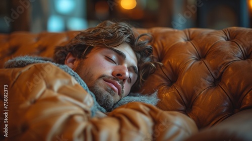 Obraz premium portrait of a man sleeping in the bed covered with blanket, handsome, trendsetter
