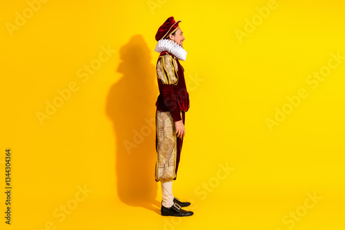 © deagreez, Fototapeta premium Portrait of a man wearing a baroque costume and posing against a vibrant yellow background