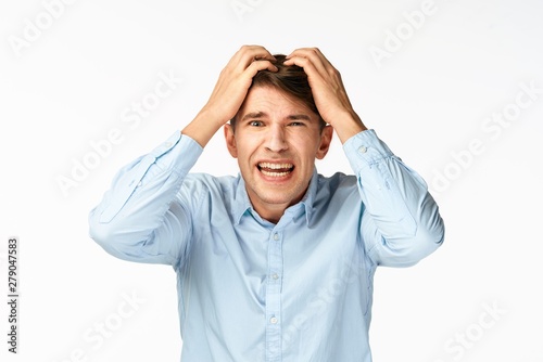 © SHOTPRIME STUDIO, Naklejka premium portrait of a man with headache isolated on white