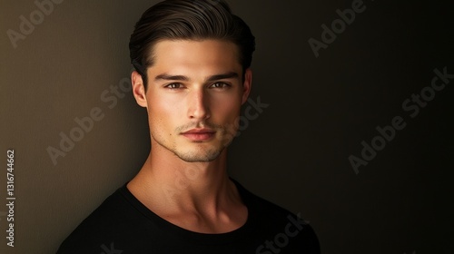 © Monchisa, Naklejka premium Portrait of a man with sleek straight hair in a dramatic lighting