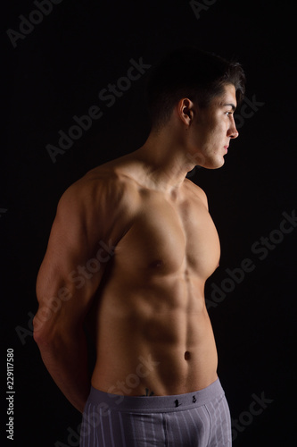© Curto, Fototapeta premium portrait of a man without clothes black background