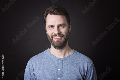 © Louis-Paul Photo, Fototapeta premium Portrait of a men with beard and mustache in studio black background