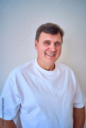 © Victoria Antre, Fototapeta premium portrait of a middle-aged man on a white background