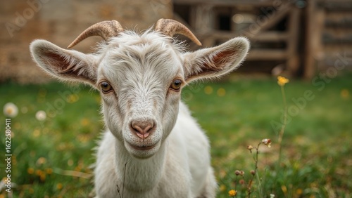 © VirtualVista, Fototapeta premium Portrait of a miniature cute goat amidst a farm backdrop.