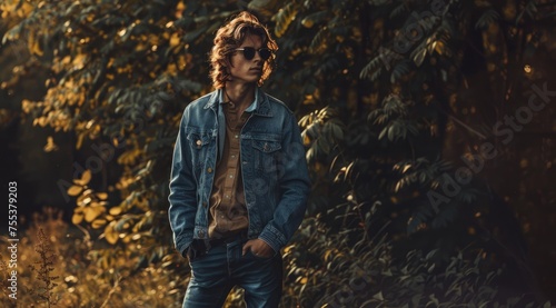 © kardaska, Fototapeta premium Portrait of a modern young people wearing jeans clothes over blue sky. Fashion shot.