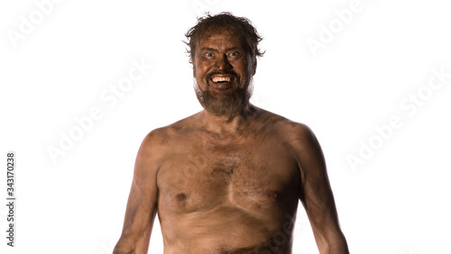 © serikbaib, Fototapeta premium portrait of a naked dirty man