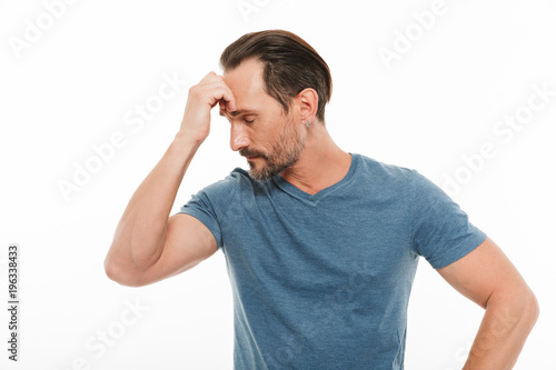 Naklejka premium Portrait of a pensive mature man dressed in t-shirt