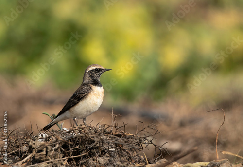 Obraz premium Portrait of a Pied wheatear at Buri farm, Bahrain