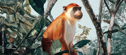Fototapeta premium Portrait of a Proboscis Monkey Posing among Trees