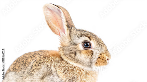 Fototapeta premium Portrait of a Rabbit: Close-up, isolated on a white background.
