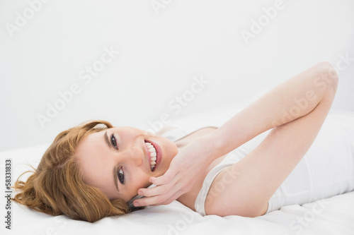 Obraz premium Portrait of a relaxed woman using mobile phone in bed
