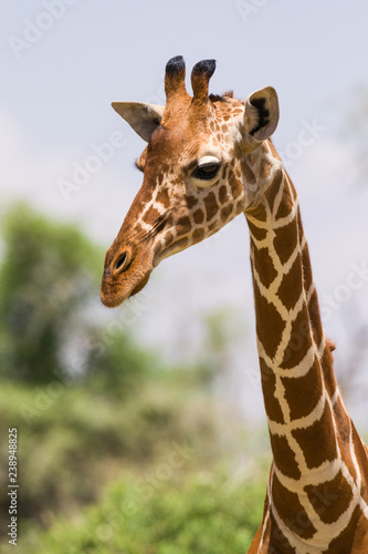 Fototapeta premium Portrait of a Reticulated giraffe (Giraffa camelopardalis reticulata), Samburu, Kenya