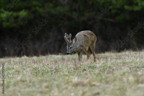 Fototapeta premium Portrait of a roe deer with growing antlers close up on a meadow