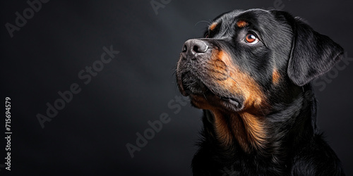 Obraz premium Portrait of a Rottweiler on a dark background,