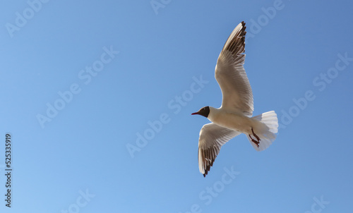 Fototapeta premium Portrait of a seagull in flight against the sky.