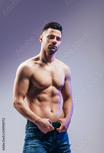 Naklejka premium Portrait of a sexy muscular shirtless man posing