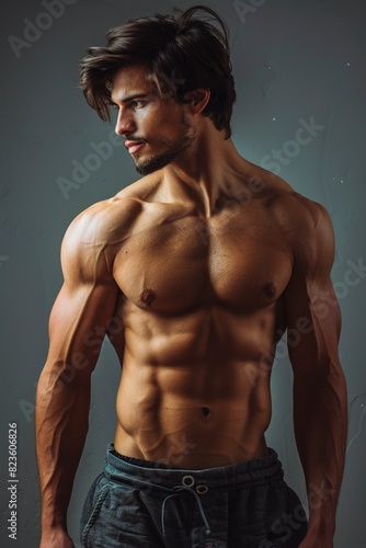 Fototapeta premium Portrait of a sexy young man with muscular body posing