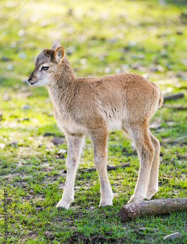 Fototapeta premium Portrait of a small calf of deer. Cute cub close-up.