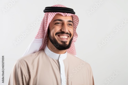 Fototapeta premium Portrait of a smiling arabian man on white background.
