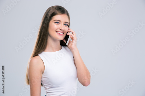 Fototapeta premium Portrait of a smiling girl talking on the phone
