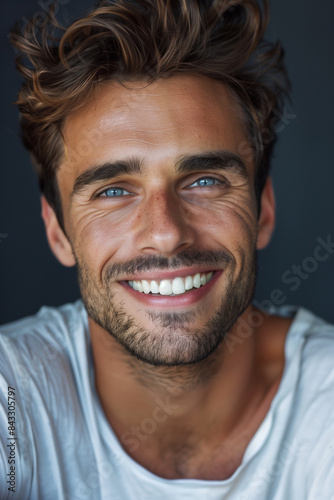 © Starmarpro, Fototapeta premium Portrait of a smiling joyful handsome man. High quality photo