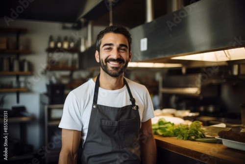 Fototapeta premium Portrait of a smiling male chef in professional kitchen