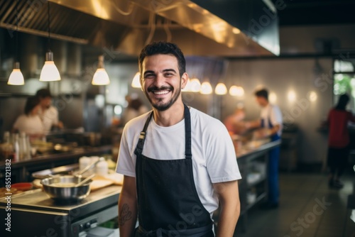 Fototapeta premium Portrait of a smiling male chef in professional kitchen