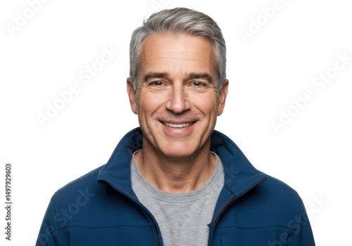© Robi, Obraz premium Portrait of a Smiling Middle Aged Man Isolated on White Background