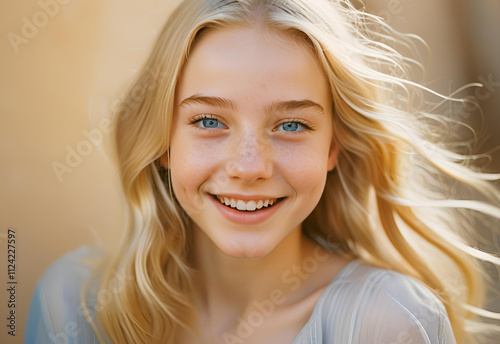 © Biljana Nik, Fototapeta premium portrait of a smiling woman with long blond hair