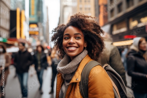 Fototapeta premium Portrait of a smiling young African American woman in city