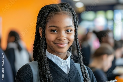 Obraz premium Portrait of a smiling young black girl with braided hair.