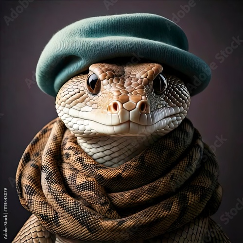 © enginakyurt, Fototapeta premium Portrait of a snake in winter clothes. digital illustration, manipulation.