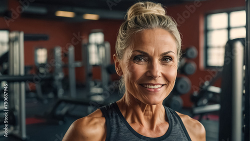Fototapeta premium Portrait of a sporty adult woman in the gym training