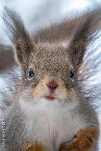 Obraz premium Portrait of a squirrel in winter or autumn.