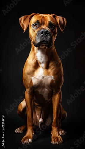 Obraz premium Portrait of a Strong and Protective Boxer Dog in Studio Lighting