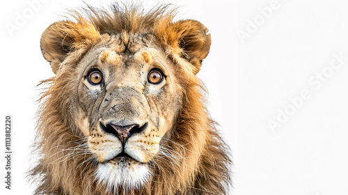 Fototapeta premium Portrait of a Surprised Lion: Close-up, isolated on a white background.
