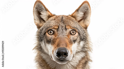 © Mahemud, Fototapeta premium Portrait of a Surprised Wolf: Close-up, isolated on a white background.
